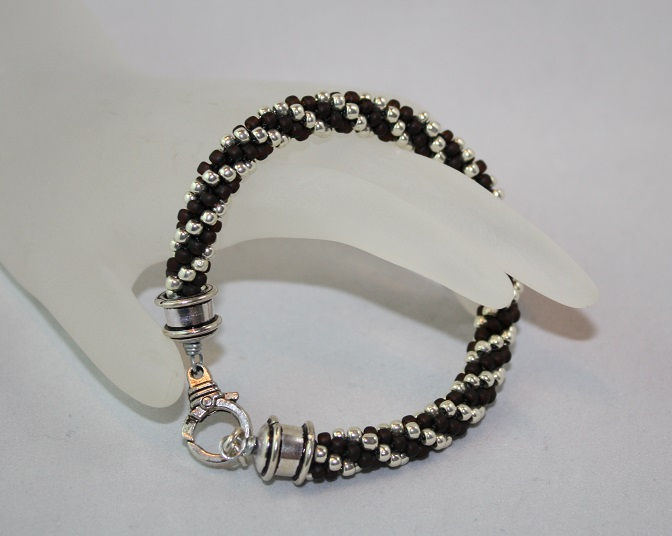 Black and Silver Spiral Kumihimo Bracelet SOLD